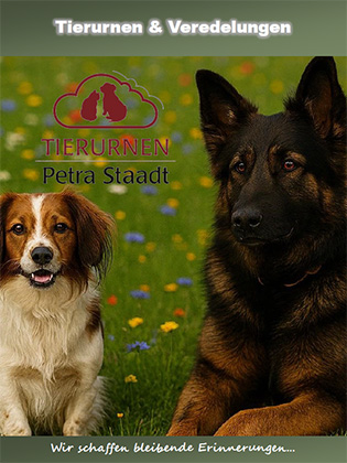 Selbstverständlich können wir die Tierurnen auch mit einem Foto oder einer Beschriftung nach Ihrem Wunsch individuell gestalten.